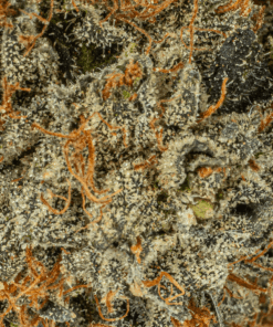 El Jefe is an indica-dominant strain made from Rare Darkness #1 and Abusive OG, with THC levels ranging from 24-26%. Its dense, sticky buds have dark green hues and bright orange hairs, giving off a hashy, earthy scent. The flavor tells a different story, spicy lemon and pine that lingers with each hit. El Jefe delivers a calming body high that soothes without knocking you out completely, making it a solid option for both seasoned users and cautious beginners. It’s especially helpful for cramps, muscle spasms, anxiety, depression, ADHD, and appetite loss.