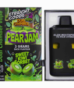 Straight Goods 6g Dual Chamber Vape – Pear Jam + Sweet Kiwi Sorbet is a high-capacity cannabis vaporizer offering two distinct flavour/strain profiles in a single premium disposable device. With two independently sealed 3g chambers (6g total), this vape lets you switch between Pear Jam and Sweet Kiwi Sorbet effortlessly, perfect for variety without carrying multiple pens.
